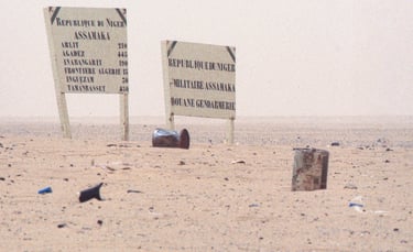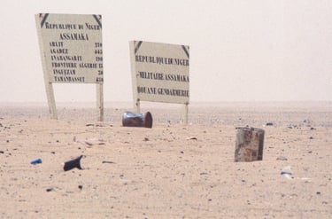 1987 - voyage de retour Brazzaville - Paris par la route. Les conditions rudes et précaires d'un trajet routier avec très peu de moyens associées aux interdictions de photographier instaurées dans la totalité des pays traversés ne permettaient pas une activité photographique systématique. Seules quelques prises de vue de la traversée du désert Nigéro-Algérien, abîmées mais au contenu unique sont arrivées à bon port.